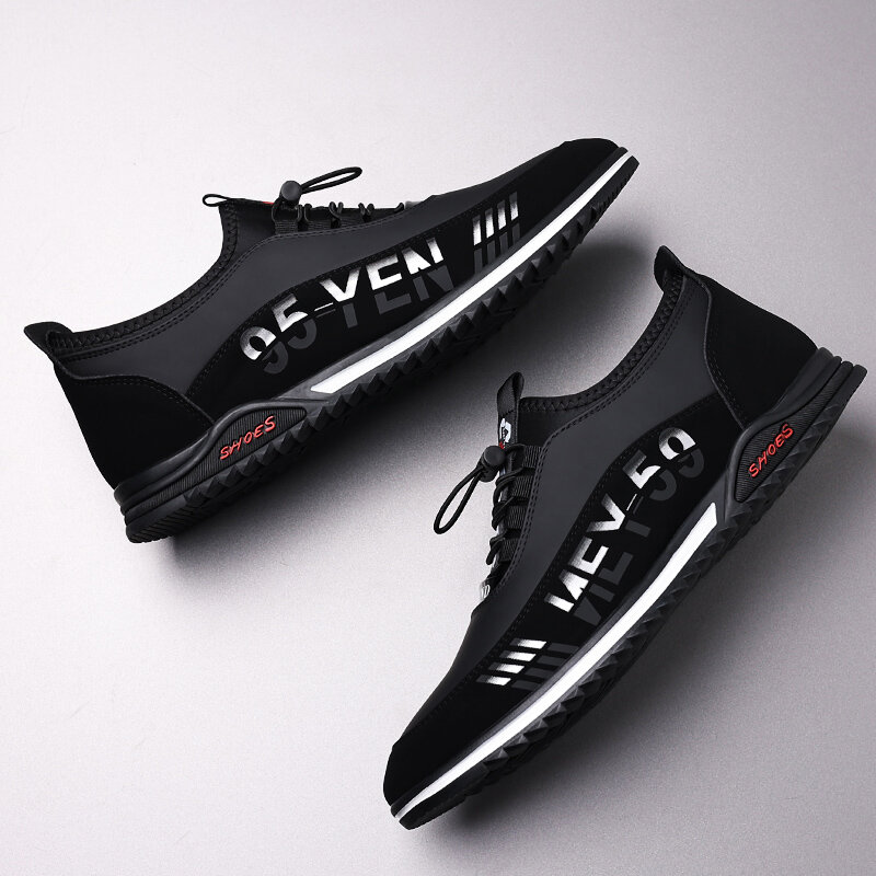 Men Microfiber Leather Breathable Soft Bottom Non Slip Elastic Laces Casual Business Shoes