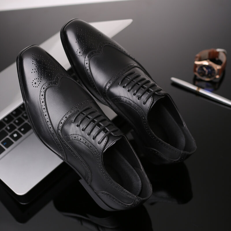 Men Microfiber Leather Breathable Pointed Toe Comfy England Dress Casual Business Shoes
