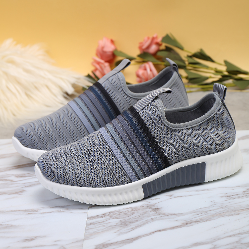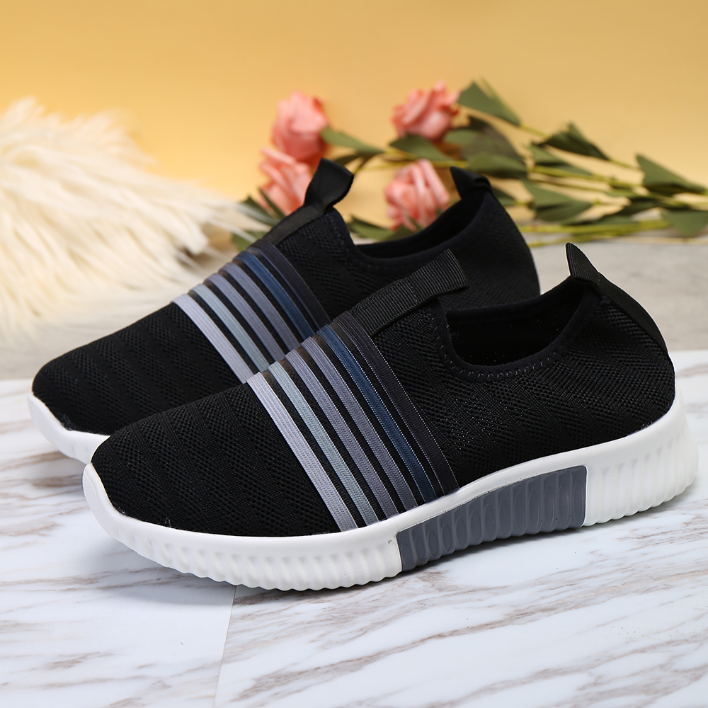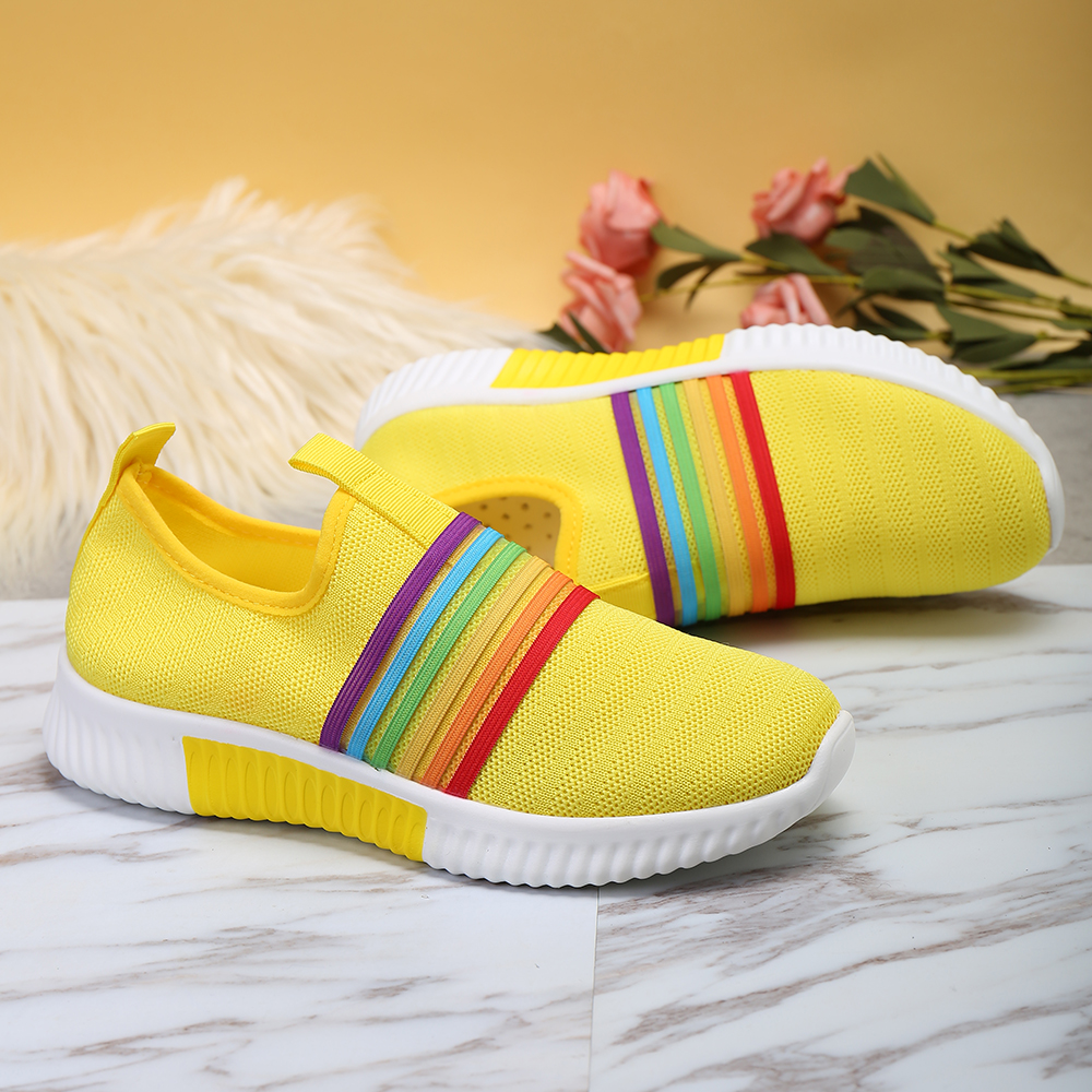 Plus Size Women Rainbow Stripe Knitted Breathable Casual Walking Shoes