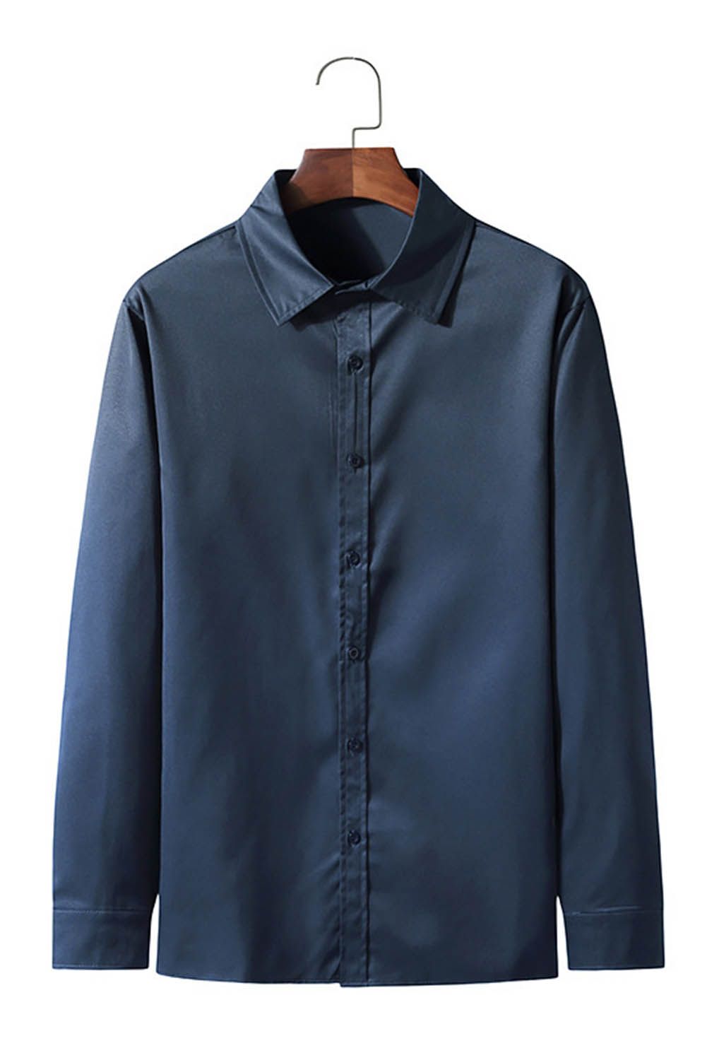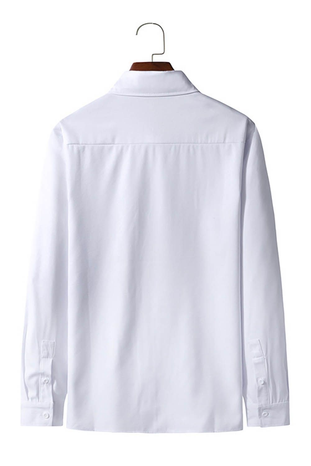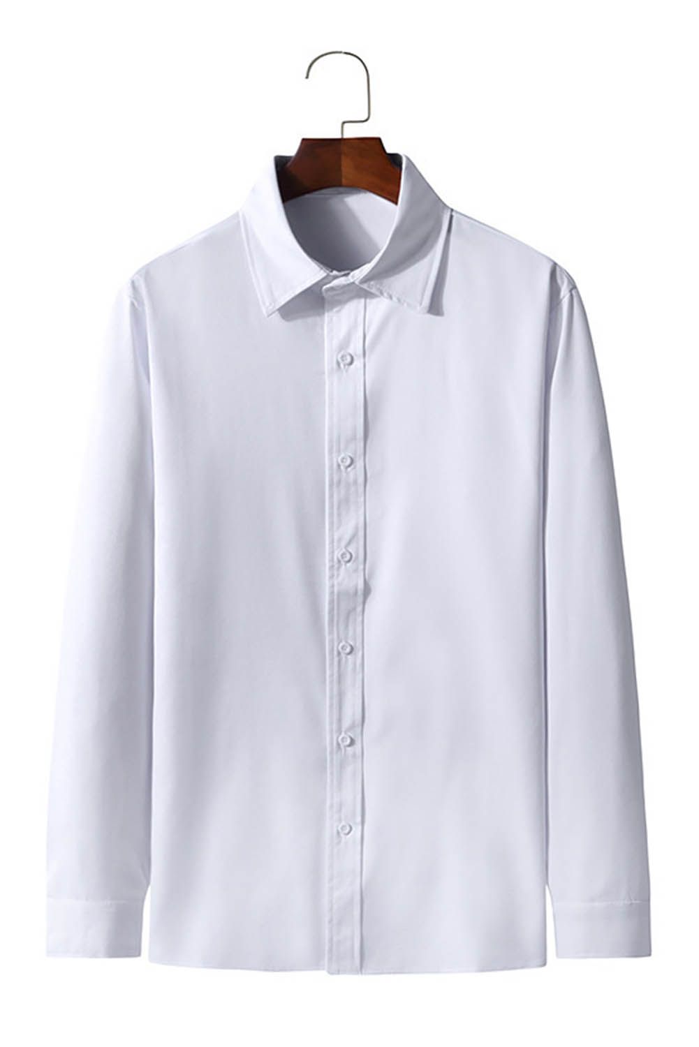 White Solid Color Button-up Long Sleeve Men's Shirt