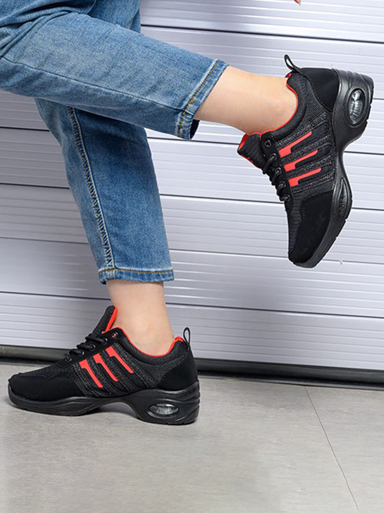 Women Mesh Splicing Suede Lace Up Sport Cushioned Sneakers