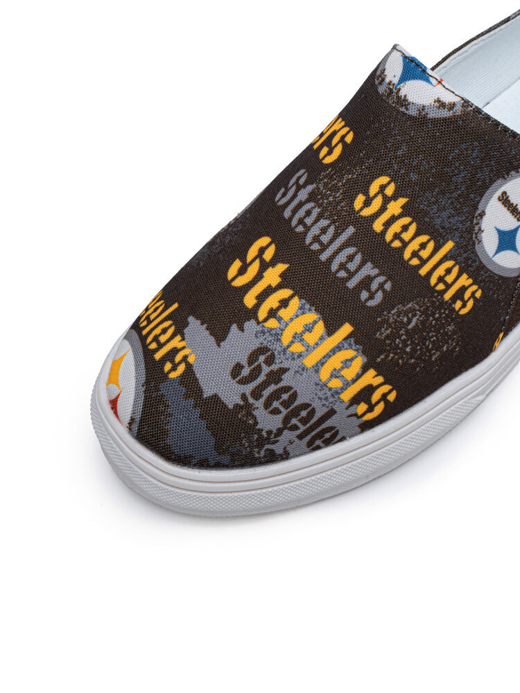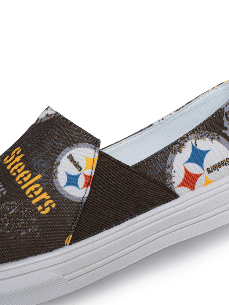Women Stylish Printing Letter Pattern Round Toe Flat Elastic Band Canvas Shoes